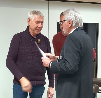 Nach Begrüßung und Gedenken wurde die Versammlung zwecks Ehrung eines Schützen unterbrochen. Der Ehrenausschuß des Bezirks Schwalmtal Brüggen vertreten durch Dieter Clemens (St. Sebastianus Amern) und Frank Trepte ehrten für Verdienste um den Schießsport Ralf Schankweiler mit den Sportorden in Bronze.