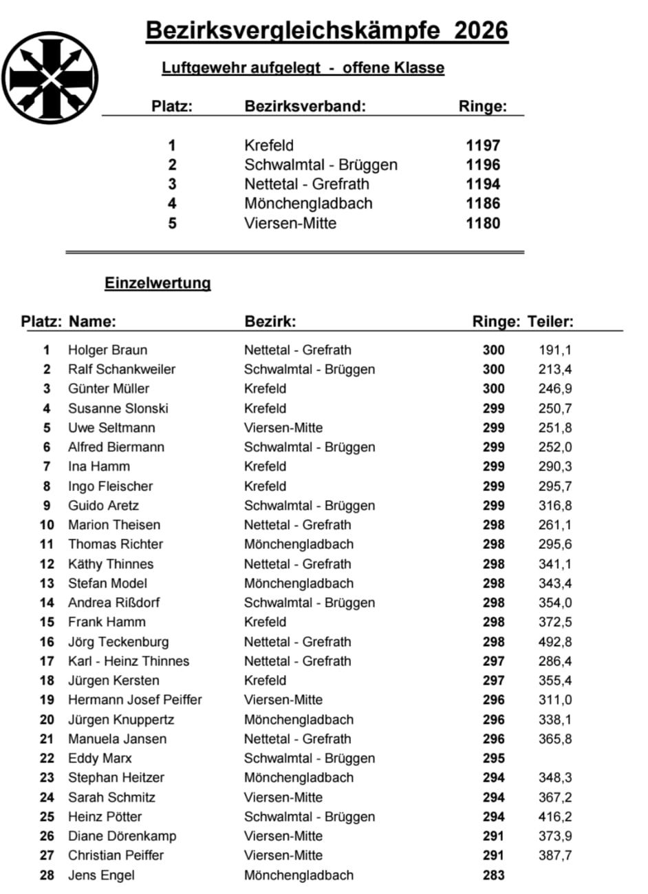 | Senioren I (m) | 1. Schankweiler, Ralf (99) 2. Brockes, Julius (89) |